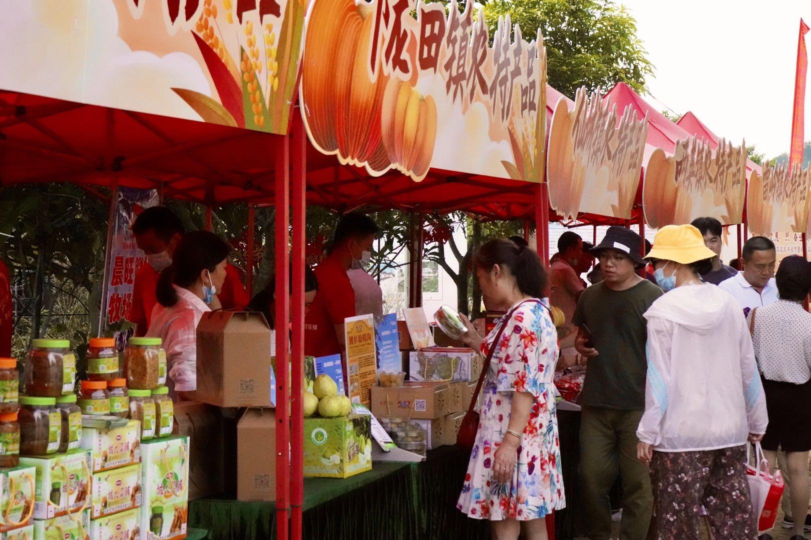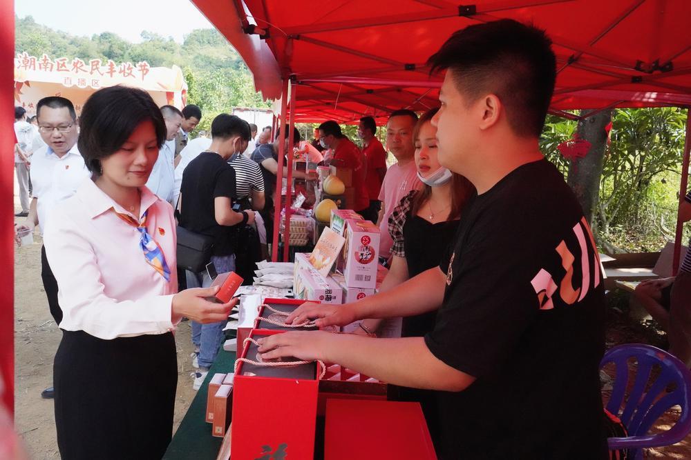 9月30日,在汕头市潮南区红场镇长埔农场里,一场以“丰收感党恩、奋进新征程”为主题的潮南区2021年中国农民丰收节暨农产品展销会活动拉开帷幕,吸引许多市民到场“围观”。