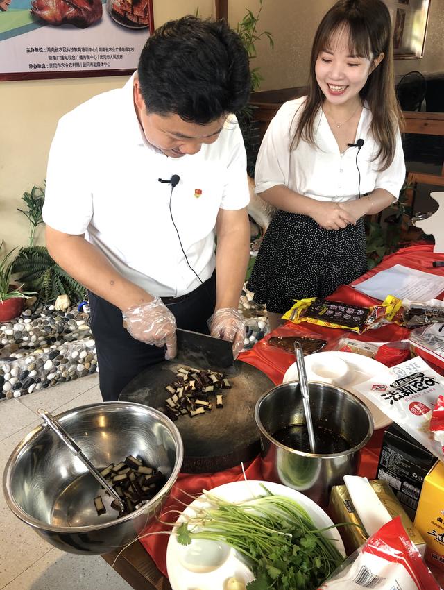 直播现场,芒果主播们和企业负责人运用通俗幽默的语言,展示武冈卤豆腐、卤铜鹅、卤猪尾巴、卤牛肉、卤牛肚、卤鸭爪等农产品,通过现场讲解,现场加工,现场品尝,给观众带来独特的直播带货感受。武冈市人民政府副市长尹放平还现场卤制卤菜,送给观看视频的网友品尝。