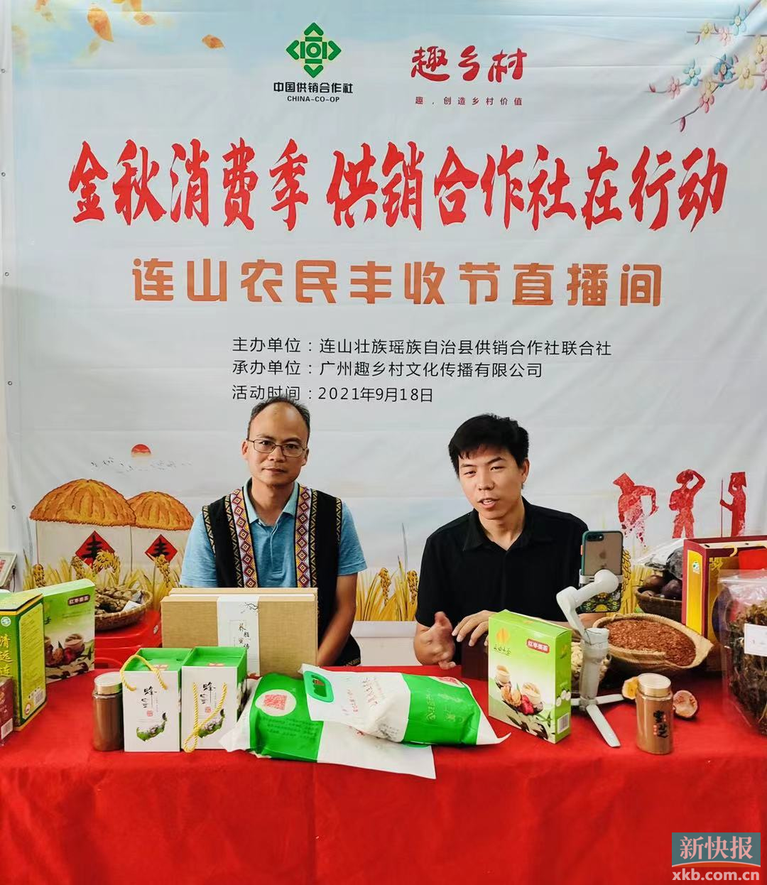 新快报讯 记者 王娟 通讯员 王帅彬 “今天给大家带来我们的连山特产……” 9月18日,连山供销合作社组织本系统直播团队开展“金秋消费季﹒供销合作社在行动”线上线下直播活动,主播阿玲、阿俊带着满满笑意与真诚,向大家介绍着连山的绿色农产品,从大米到百香果,从山苍子精油到手锤,品类丰富、绿色健康、包装精致的农产品们备受客户关注。